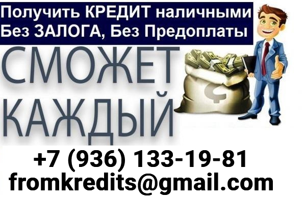 | Кредит на любые цели и нужды для всех категорий граждан! Не упустите уникальную возможность получить деньги под минимальный процент на адекватных условиях. При этом Вам не нужно искать поручителей и подтверждать свои доходы, работаем по упрощенной схеме. Вложений и залогового обеспечения так же не требуется. Предоставляем суммы в пределах до 5 млн. рублей наличными в одни руки, сроком до 7 лет гражданам РФ в возрасте 18-65лет. Обращайтесь в любое время! Все подробности по электронной почте и контактному телефону(WhatsApp). |